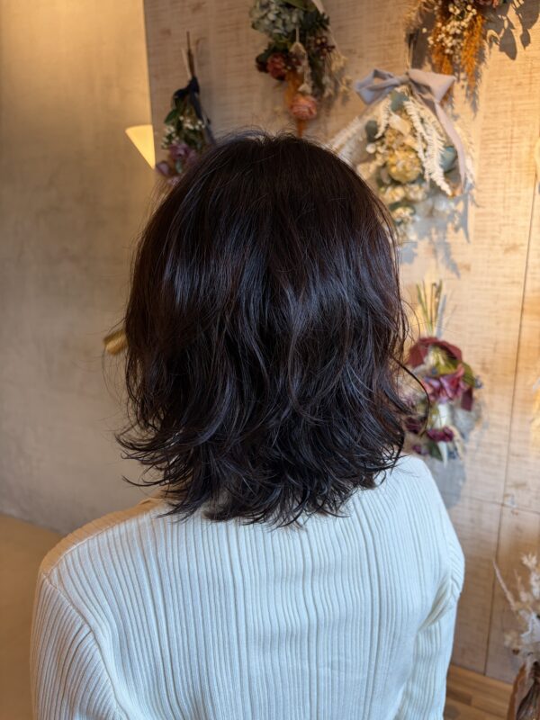 パーマをかけたのは2ヵ月前でご来店時は重さも出ておりパーマも出しにくくなっておりましたが、メンテナンスカットをすることでパーマが復活してくれるので2.3ヵ月して「パーマでにくいかも」と思った方はパーマをかけられる前に一度メンテナンスカットをおススメいたしますのでぜひぜひご相談くださいませ!